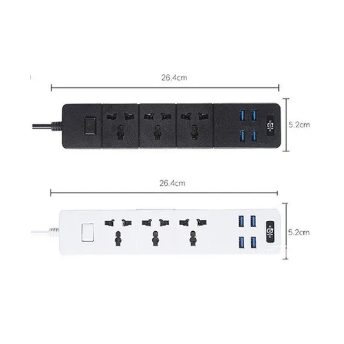 LUCKY HAWK LH-T18 3 Port 6.2A + 4 USB Surge Protection Power Extension Cord