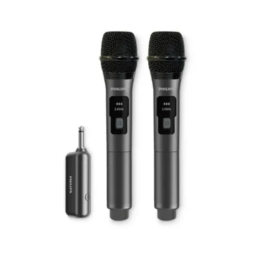 Experience clear vocals and crisp instrumentals with the Philips Wireless Microphone DLM3401TP/00. Featuring 2.4GHz wireless transmission with a 30-meter range, adjustable EQ and vocal sensitivity, and a rechargeable receiver, it delivers up to 12 hours of continuous use for parties, karaoke, or live performances.