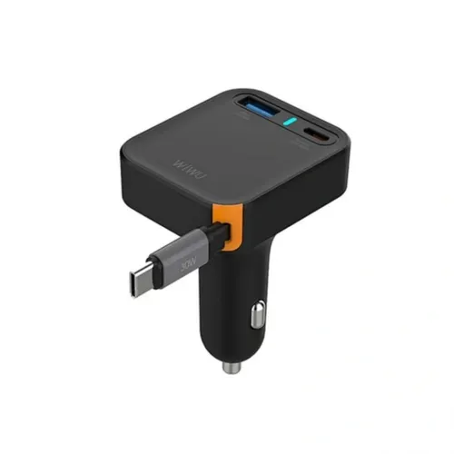 The WiWU Wi-CC033 Helix is the ultimate in-car charging solution for power users. This powerhouse features a built-in 60cm retractable USB-C cable, allowing you to charge your laptop or phone without the mess of tangled wires. Delivering a massive 65W total output with PD and PPS support, it can fast-charge three devices simultaneously. The aluminum alloy housing provides superior cooling, while the ambient ring light ensures you can easily find your ports in the dark.